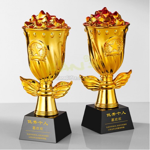 | 金屬獎盃:獎盃是頒發給個人或群體的,以表彰其在某一領域追求卓越,成就優異的證明。縱然獎盃的歷史故事在中國與西方各有不同,但皆由酒杯演變而來。常見的獎盃由盃身、盃耳、盃蓋、盃腳和獎盃底座構成。設計獨特的獎盃則可被認為是某個頒獎典禮或一場體育盛事的象徵。預防訂製獎盃生鏽是保持獎盃歷久常新的重要步驟。 |