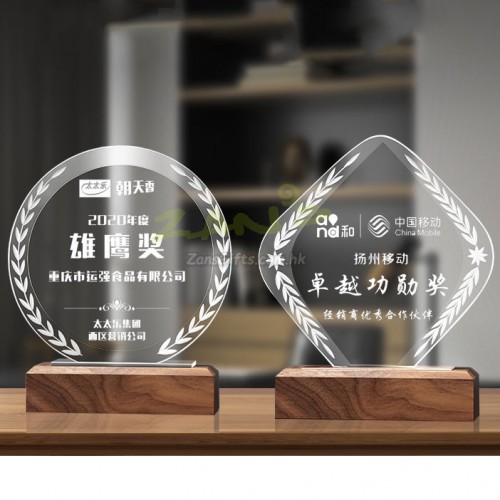| 水晶獎座:水晶獎座有著水晶晶瑩剔透的優勢,手感細膩,還可以刻字,紋圖案,造型也基本可以達到金屬獎座的形狀。製作水晶獎座大致可分為選料、開料、壓胚、粗拋光、細拋光、打孔、鍍彩、雕刻、噴砂、包裝十個步驟。水晶獎座的雕刻工藝可分為平面雕刻和鐳射內雕。另外,基於訂製水晶獎座材質的特性,在運輸包裝與保養方面也有講究。 |