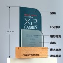 水晶獎座:水晶獎座有著水晶晶瑩剔透的優勢,手感細膩,還可以刻字,紋圖案,造型也基本可以達到金屬獎座的形狀。製作水晶獎座大致可分為選料、開料、壓胚、粗拋光、細拋光、打孔、鍍彩、雕刻、噴砂、包裝十個步驟。水晶獎座的雕刻工藝可分為平面雕刻和鐳射內雕。另外,基於訂製水晶獎座材質的特性,在運輸包裝與保養方面也有講究。