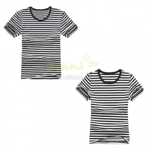 Round Neck Striped Short Sleeve Shirt - Souvenirs