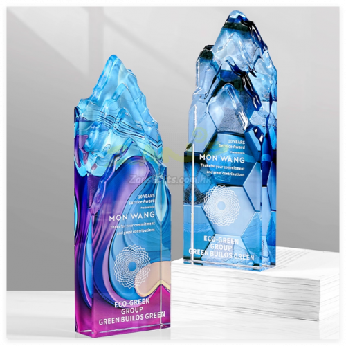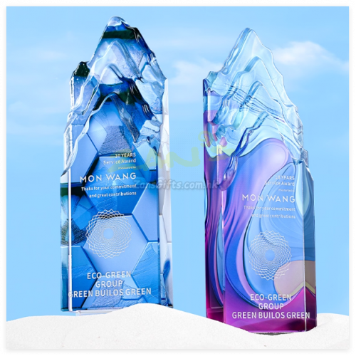 | 水晶獎座:水晶獎座有著水晶晶瑩剔透的優勢,手感細膩,還可以刻字,紋圖案,造型也基本可以達到金屬獎座的形狀。製作水晶獎座大致可分為選料、開料、壓胚、粗拋光、細拋光、打孔、鍍彩、雕刻、噴砂、包裝十個步驟。水晶獎座的雕刻工藝可分為平面雕刻和鐳射內雕。另外,基於訂製水晶獎座材質的特性,在運輸包裝與保養方面也有講究。 |