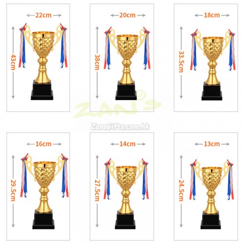 | 根據獎盃的外形可以分為:半碗盃、3/4碗盃、雪糕盃等,規格(口徑)從8cm至26cm(其中24cm-26cm為特大盃)。 | ||||||||||||